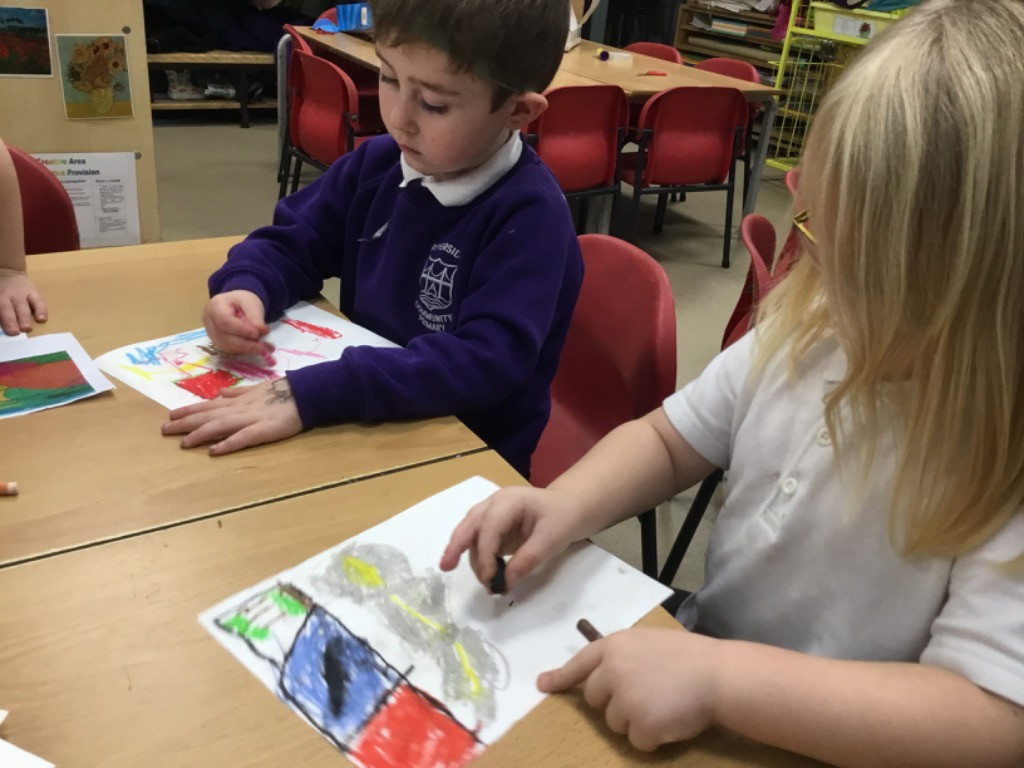 We have been making our own starry night pictures inspired by Vincent Van Gough.