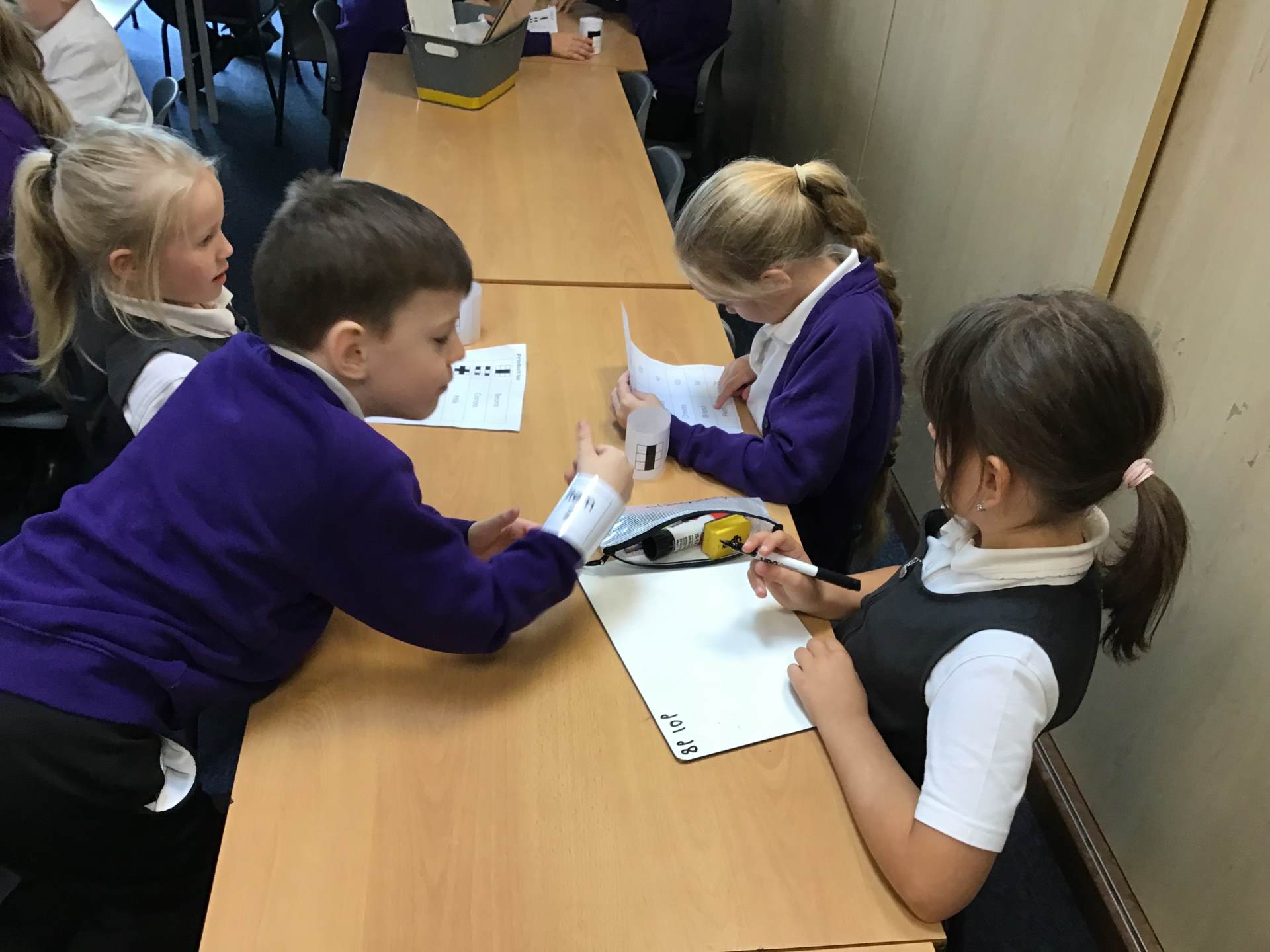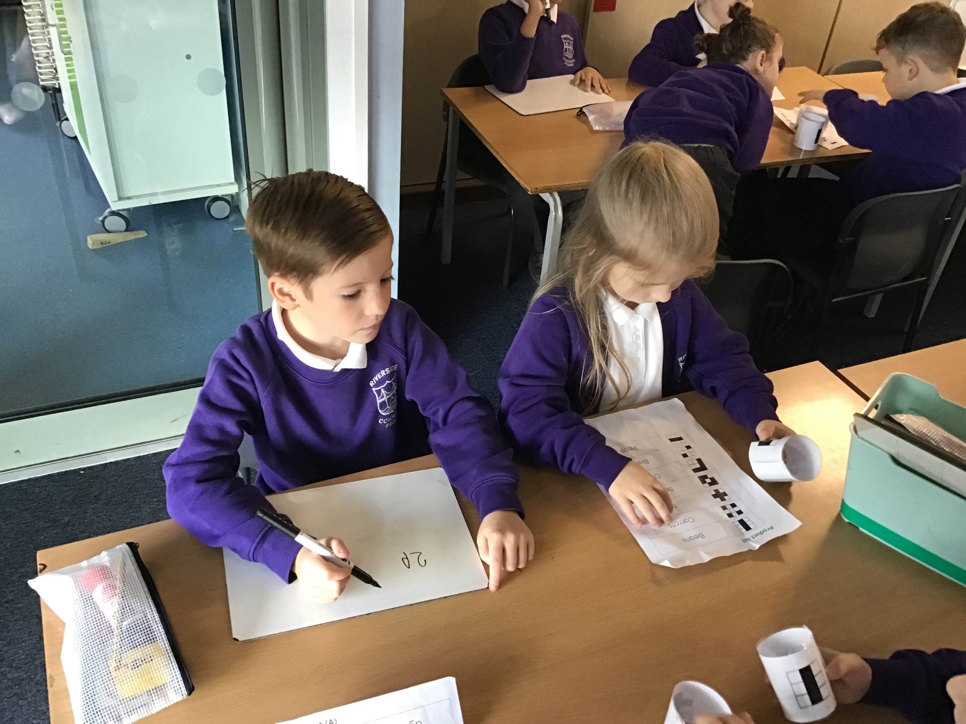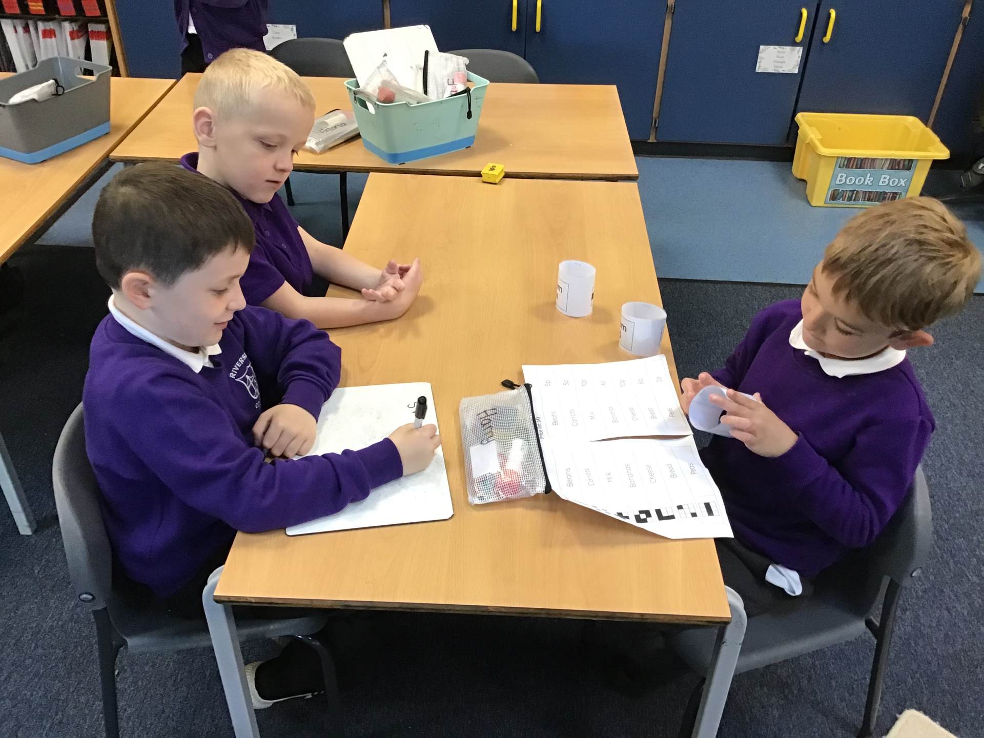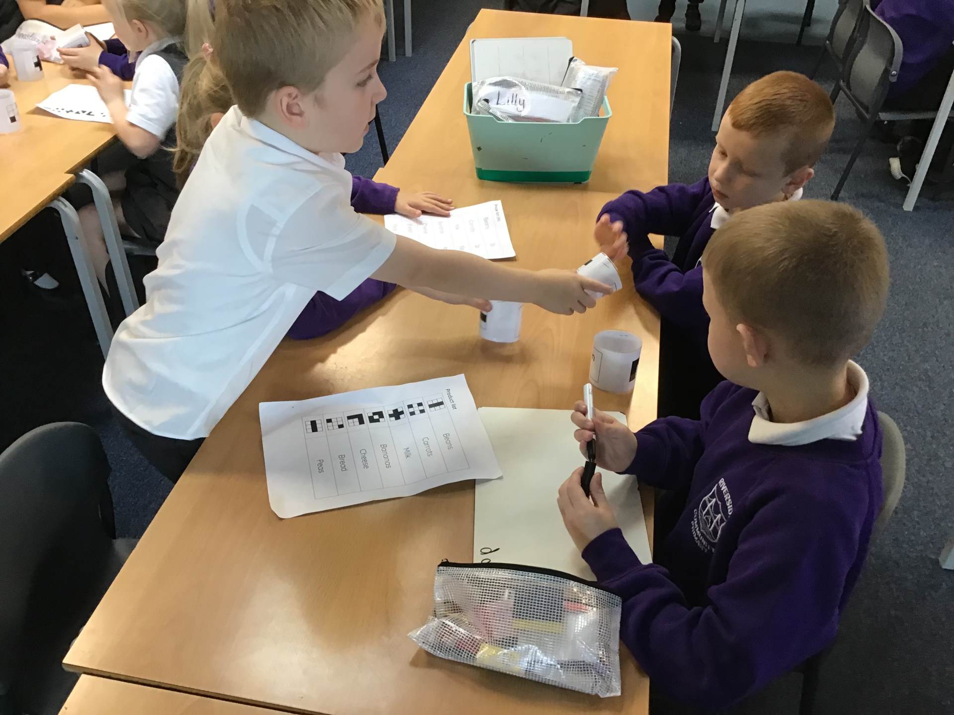 In year 2 we have been looking at how IT can help us. We have been looking carefully at how barcodes and scanners work in shops and we discussed how fast computers are compared to people. We took it in turns being the barcode finder, price checker and adding up the total. It took a long time! Computers definitely speed things up!
