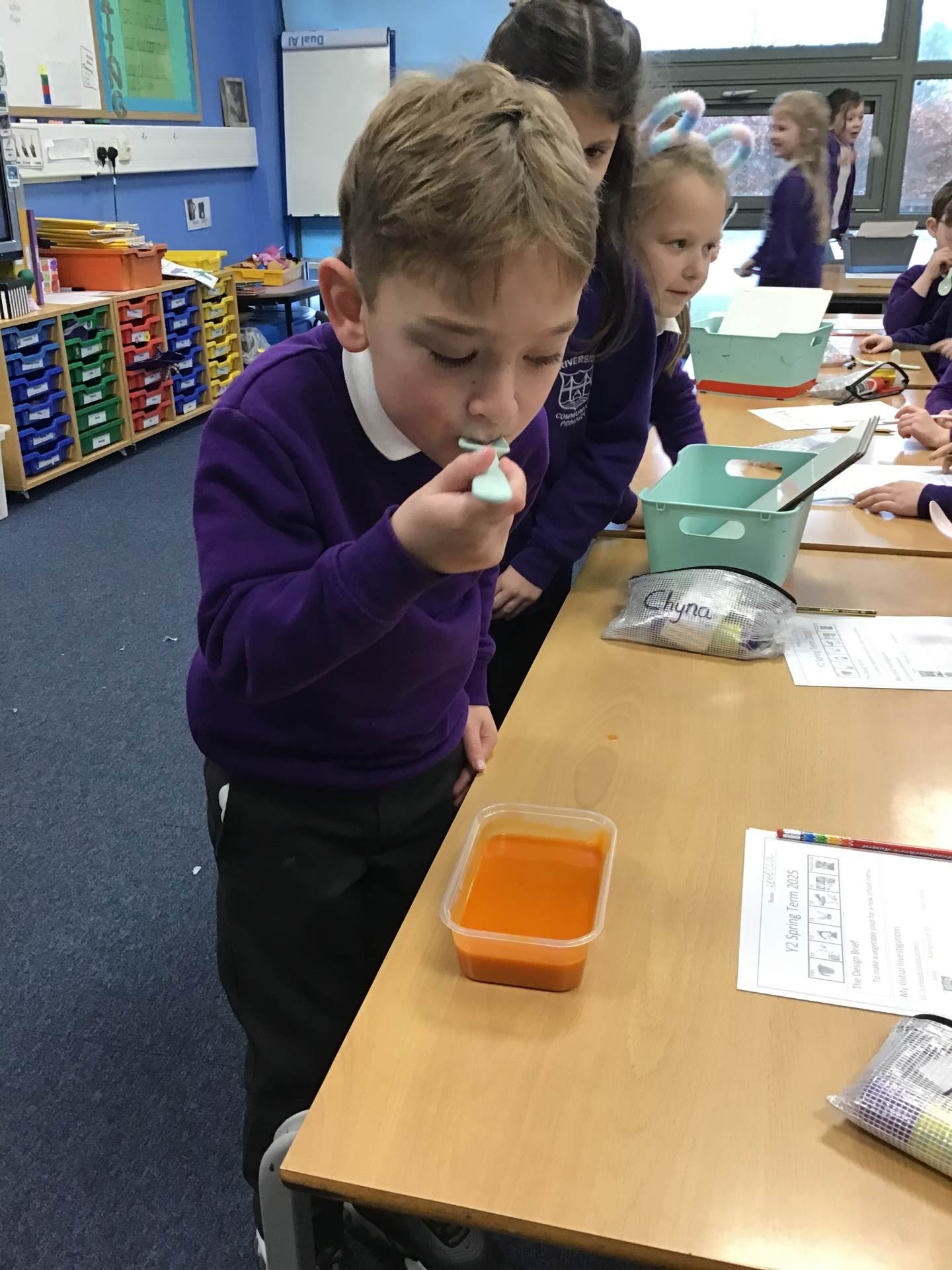 Year 2 have been investigating soup as part of our DT learning. We tried 4 different soups, rated them out of 10 and described their taste and texture. Over the next few weeks, we will be designing and making our own soup using out chopping and peeling skills.