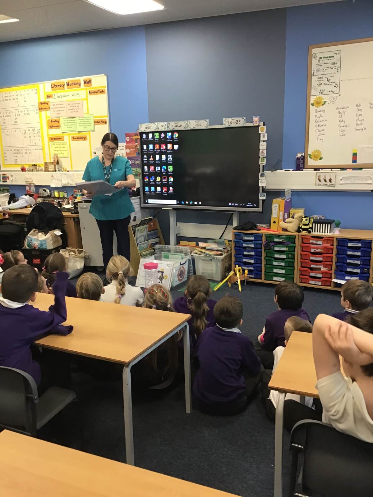 Year 2 had a visit from the dentist this morning. We spoke about how important it is to look after our teeth and brush them twice a day. We also got our very own toothbrush and book!