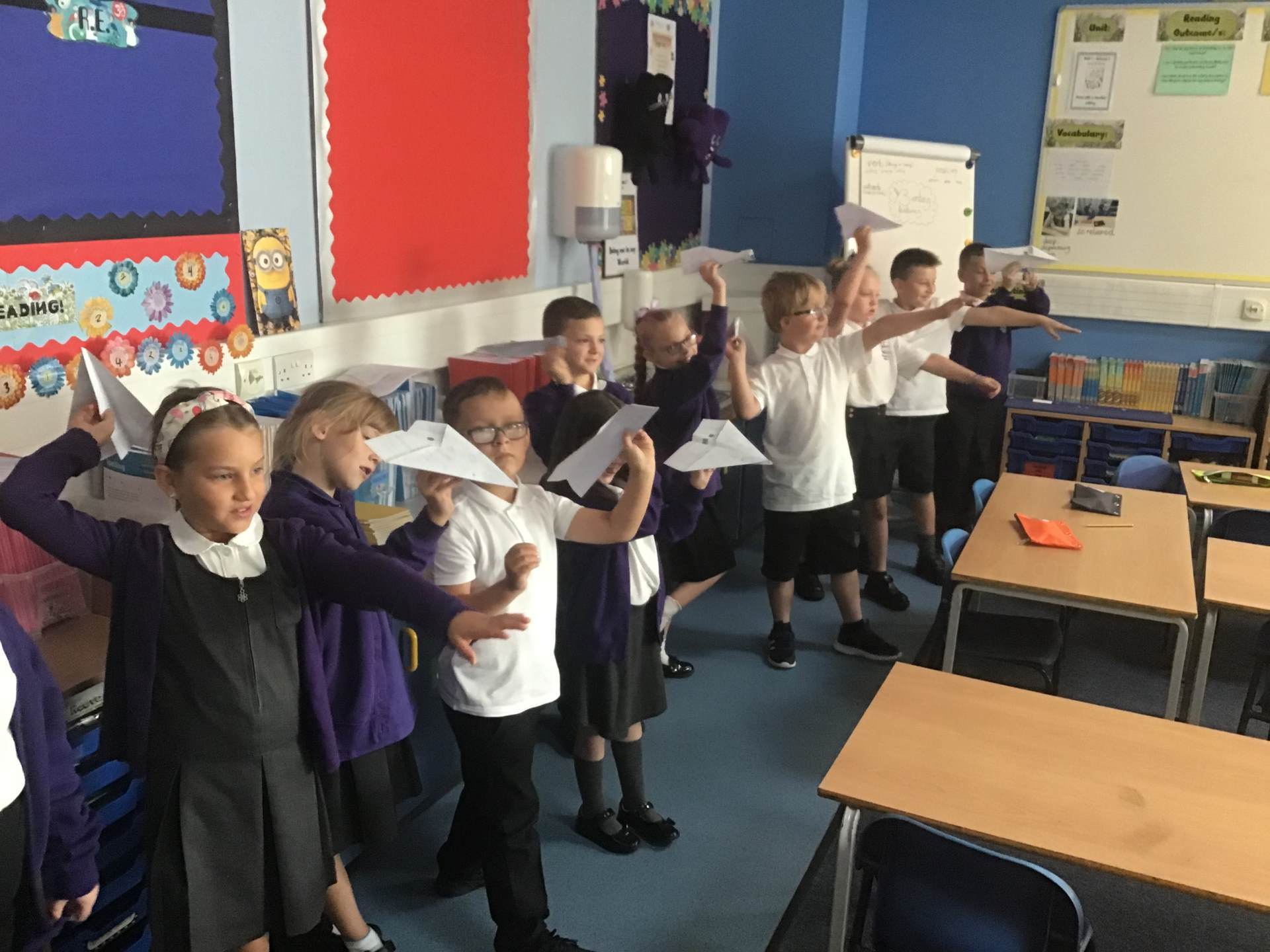 Forces have been the focus for Science so far: throwing balls of different shapes and sizes as well as crafting our own paper aeroplanes to sail through air, in order to learn about gravity and air resistance.