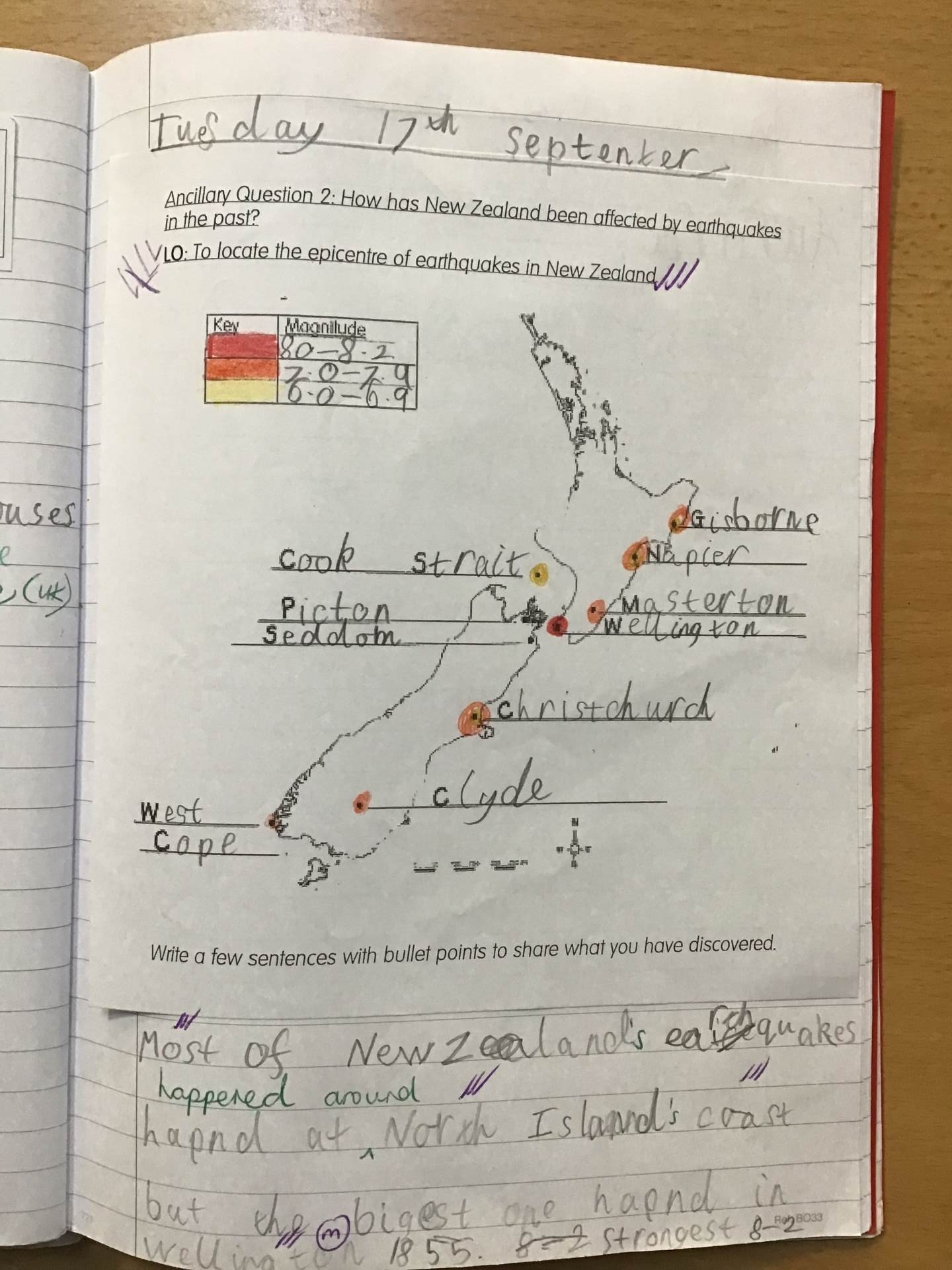 Our Geography learning has flown us across the world to New Zealand, Haiti and Chile so far, this term. Thankfully, we've not been able to focus on where we live because we don't experience earthquakes! After looking at the damage and destruction caused in 2011 to Christchurch in New Zealand, learnt that New Zealand has experienced many earthquakes over the years because it lies on boundaries of 2 tectonic plates! Another fact we were rather flabbergasted by was that earthquakes with a higher magnitude on the Richter Scale don't always cause the most damage! The destruction caused by an earthquake often depends on where it happens and how rich/poor the country is. For example, Haiti is not a rich country so the buildings are more easily damaged, and the people do not always get trained how to deal with an earthquake.