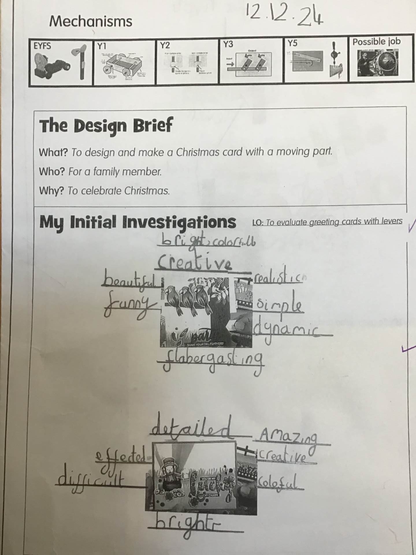 Happy New Year and a warm welcome to 2025! We didn't have time before our holidays - because we were so busy - to show you our Design & Technology creations: moving Christmas Cards! Yep, you read that correctly - our cards 'moved'! All because we learnt how to use levers and linkages to move a part of the card we chose and designed. We hope those who received the cards enjoyed this additional fabulousness - we loved making them!