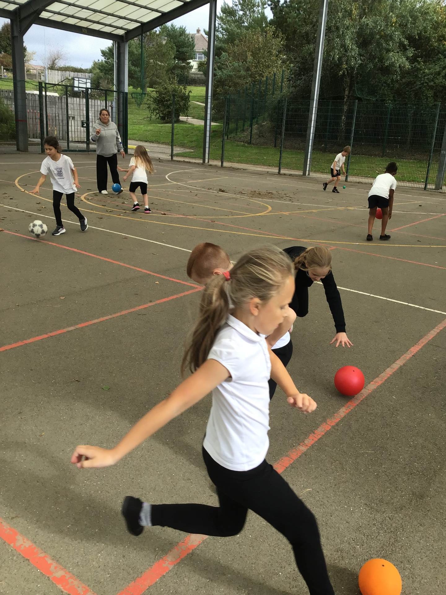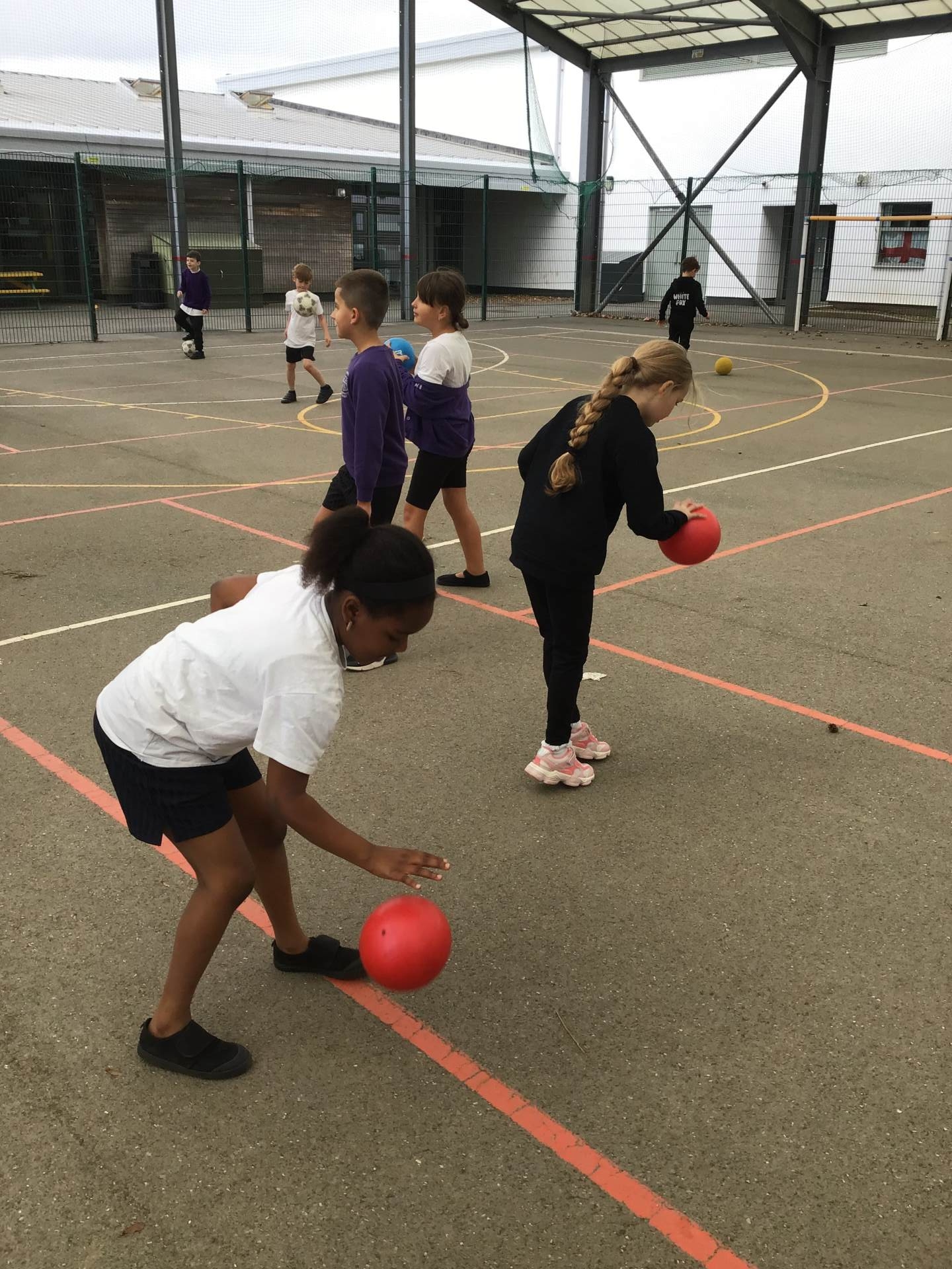 During our outdoor PE sessions, we have been building our ball-handling skills through a variety of fun and challenging activities. We've explored different ways of moving with a ball, using a range of ball sizes to help us adapt and refine our techniques. Our focus has been on key movements such as dribbling, bouncing, and throwing and catching. A big part of our learning has been about maintaining control of the ball while staying aware of our surroundings by keeping our heads up as we move.