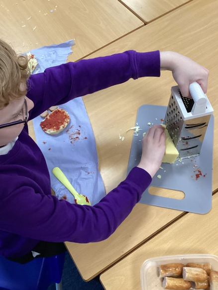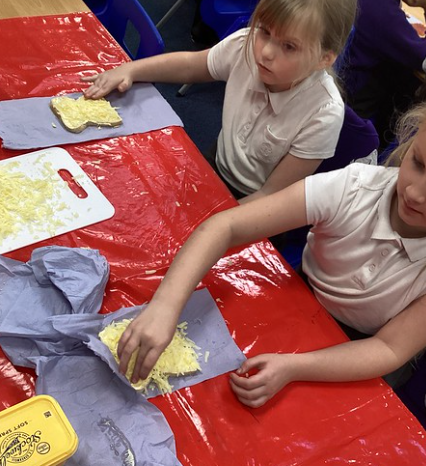 With food on all our minds before Christmas, Year 4 decided to utilise our Christmas Dinner to satisfy our D&T brief. Our main aim was to learn the skill of 'spreading' so we thought: what do we normally do with leftovers from a meal? Make a sandwich was the most common reply so we did exactly that with Christmas Dinner leftovers! Some of us decided to make a leftovers pizza, whereas others of us wanted a juicy toasted sandwich. Each of them needed 'spreading' with either butter or tomato passata. As you can see from our faces, this project gave us particular satisfaction.