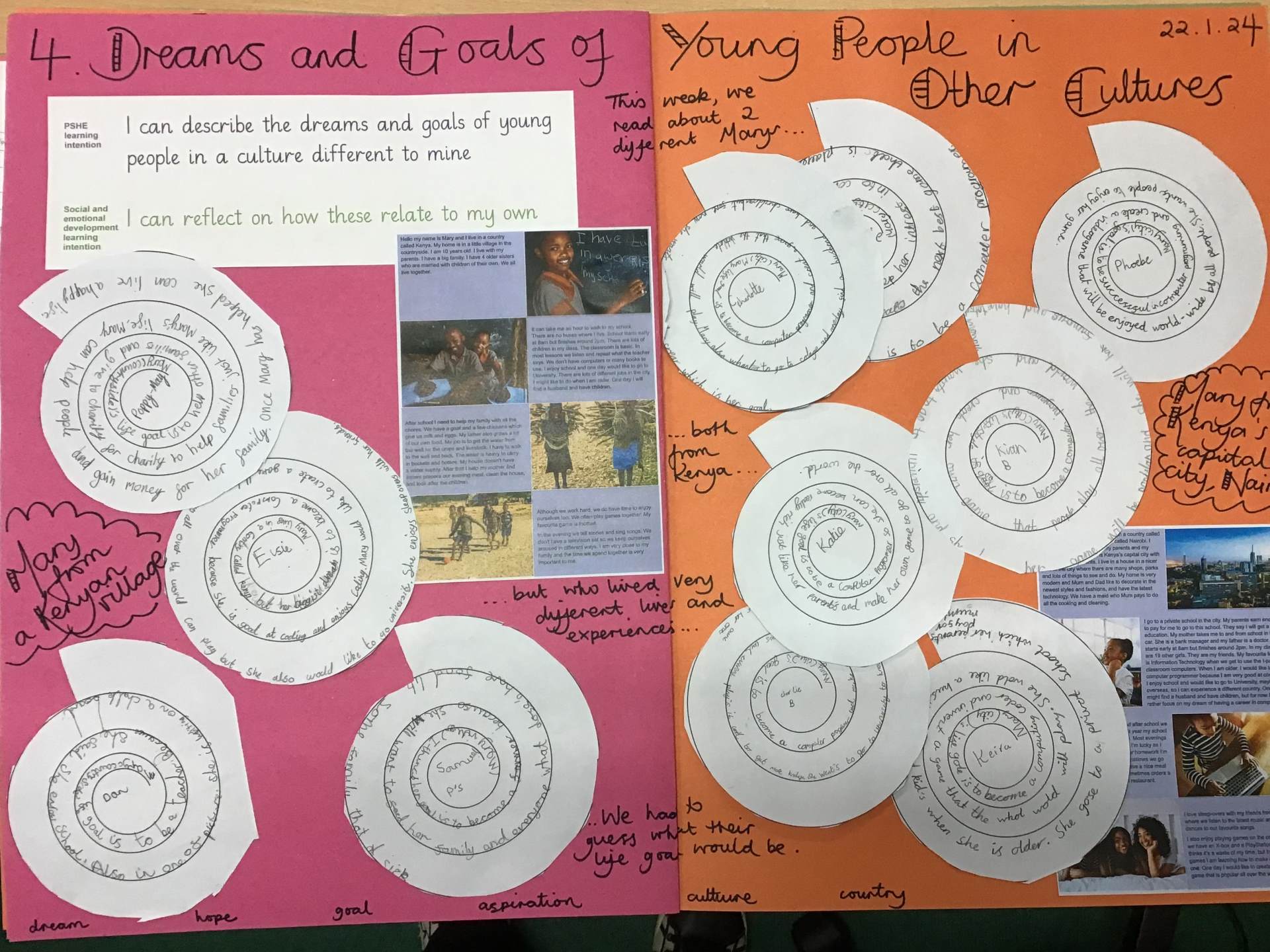 Throughout this term's PSHE, we've been contemplating our 'Dreams & Goals' which has had us in a very reflective mood. Having considered what we aim to achieve in our lives - not just in terms of the job we would like, but also, how we would like our life styles to be - we committed our goals to paper and investigated what we need to do to make them happen! Some of us were lured in by the salaries certain jobs promised to provide, but others of us wanted to make sure we chose our paths wisely to ensure we are happy above everything else! On top of all this self-awareness/reflection, we've continued to develop of skills of empathy by comparing how different cultures provide different opportunities.