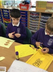 Next, we were shown how to make an autumnal decoration (either a sunflower, mosaic vegetable or a hedgerow). We took notes for each step of the sequence and then wrote our own instructions so that we could pass them to another Y5 class to follow. We took great care when publishing our work.